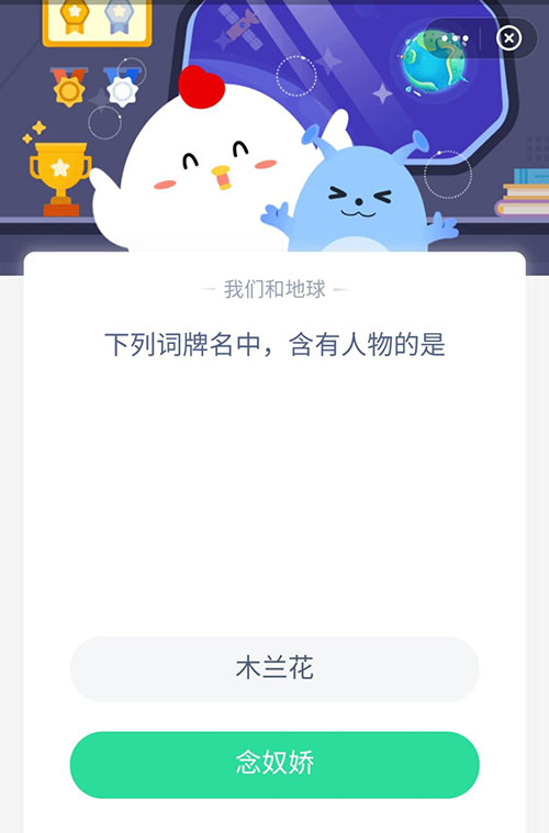 在“念奴娇,木兰花”这两个选择中,哪个词牌名中含有人物,支付宝蚂蚁庄园4月29日答案,沙包手游来为你轻松提供,选择正确就会有小鸡饲料可以领取,赶紧和小编一起来看看吧。