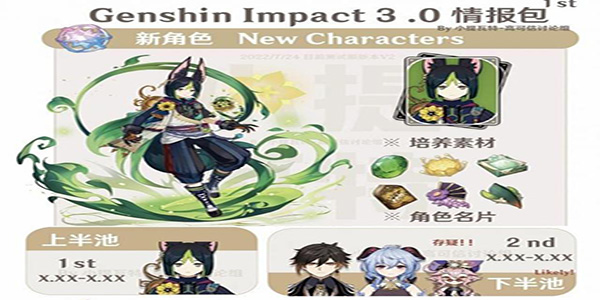 原神3,0版本的开放离我们也不远了,就在最近马上就要开启全新的原神版本了,在3.0版本中各位旅行者最想知道的肯定就是我们的up卡池和武器池的情况了,想要知道关于原神3.0版本卡池的朋友们就做好准备跟我一起去看一下吧。