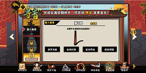 无悔华夏中目前有着一个寻音之旅的活动,而这一活动已经进入到了第二篇了,而不少玩家不知道寻音之旅第二篇的答案,所以下面就带来了无悔华夏寻音之旅第二篇答案一览了,一起来看看吧。