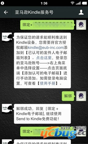 Kindle 邮箱绑定成功后,订阅号会提示你进入亚马逊官网手机版,登录账号、进入设置、在页面底部添加邮箱 kindle@eub-inc.com 即可。