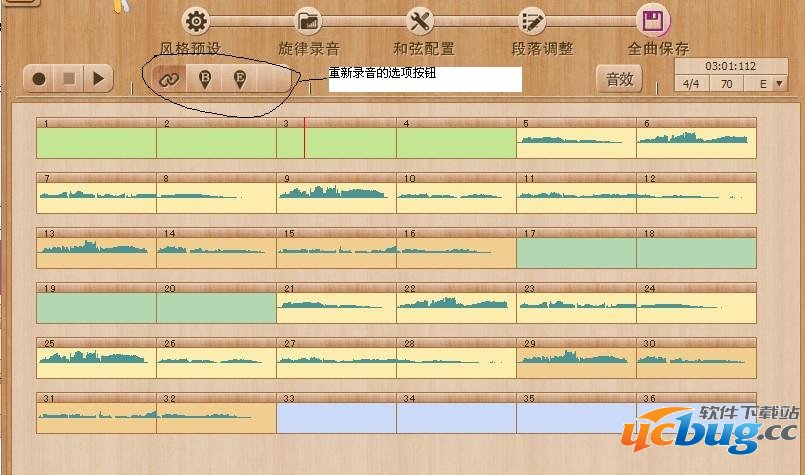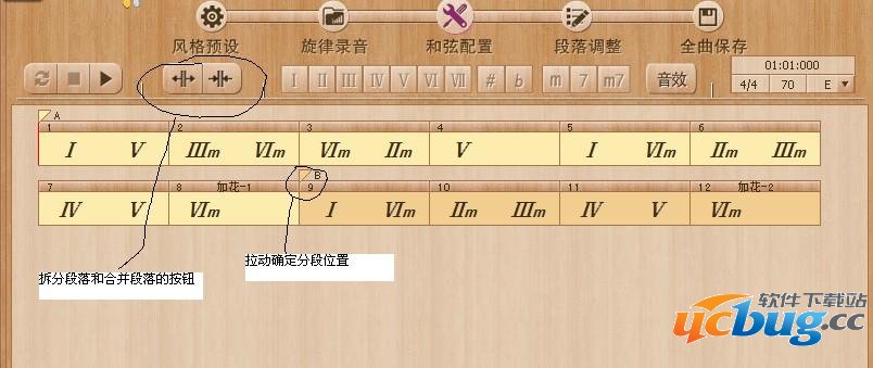 A.关于手动分段:一般的歌曲,有乐句乐段之分。按大的分比如主歌,副歌(也就是大家所谓的前半段和后半段,后半段一般为高潮部分。)再分细一点,主歌有可以分为主歌A,主歌B ..副歌分为副歌A,副歌B等。这些段落的划分切实的关系到歌曲伴奏类型的变化,关系到歌曲层次的表现。所以如果发现软件在自动分段出现错误的时候,大家可以手动经行分段,确定好自己的段落区别。分好段落过后要记得删除全部和弦,然后点击左上角的刷新按钮进行重新编曲。