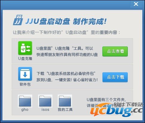 3.安装完成后,在电脑桌面上就会显示“JjU盘装系统”快捷方式,并自动运行工具,如图: