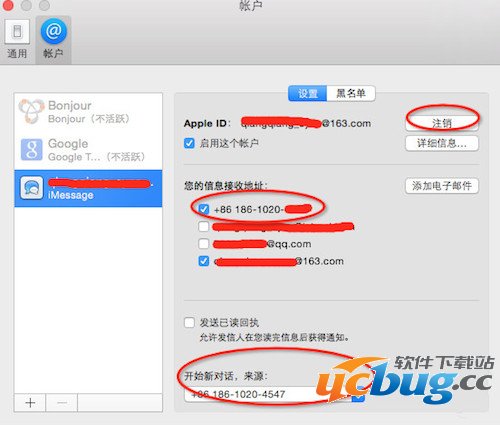 再mac下点击信息 --- 偏好设置---imessages 您接受的信息地址要是你的手机号 和 iphone端设置一致注意 iphone端也要这么设置 默认用手机号然后注销 重新登录即可 :