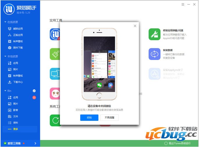 1、下载安装爱思助手连接设备之后,点击下方“更多”,点击“微信表情”