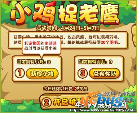 2、点击获得小鸡前往宠物挑战水蓝蓝获得小鸡,请对我们的水蓝蓝温柔点哦!