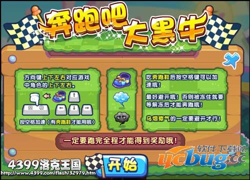 3、就是一个键盘的跑酷游戏,利用键盘的上下左右进行控制黑牛奔跑!记得躲避乌云和冰块哦!