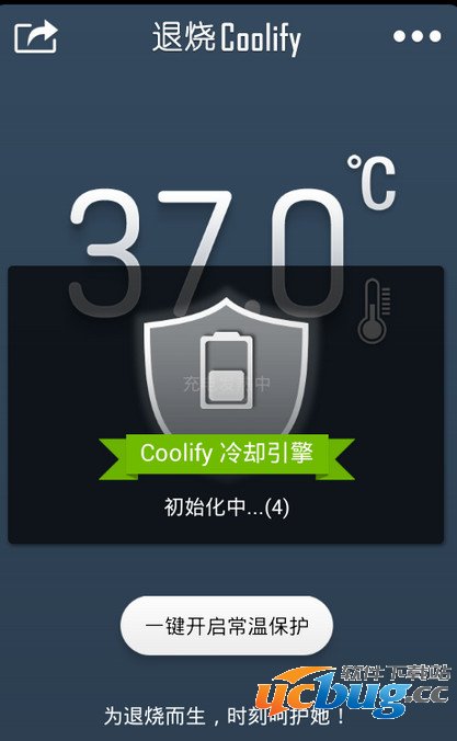 2、进入退烧Coolify主界面,只需点击“一键开启常温保护”,点击后,需请求ROOT权限,请进入MIUI的安全应用允许退烧Coolify获取ROOT权限,进度完成后,系统即进入常温保护状态,重启后,保护状态才会失效