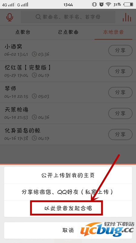 然后在界面出现的选项中选择 “以此录音发起合唱”