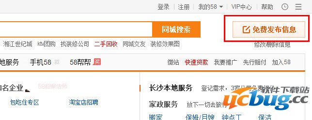 1、首先我们进入58同城,然后点击右上角“免费发布消息”