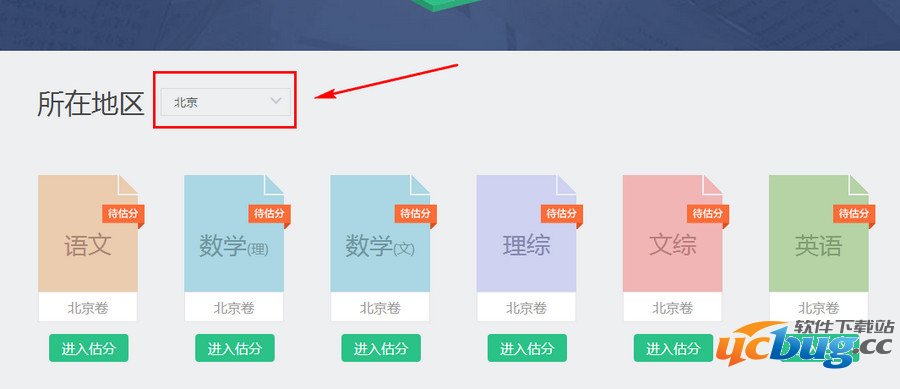 2、进入之后选择你高考的省份,然后选择你想估分的科目,点击“进入估分”