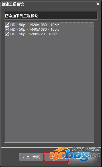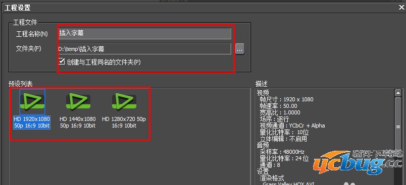 在 工程设置 对话框里面填写工程名称等信息,然后选择一种预设的视频格式,点击 确定 :