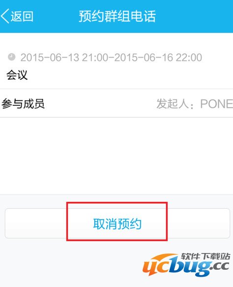 如果我们想取消群组电话预约的话,可以直接点击QQ弹出的预约成功的消息,然后便可以直接跳转进入预约页面,在该页面中我们选择“取消预约”选项。