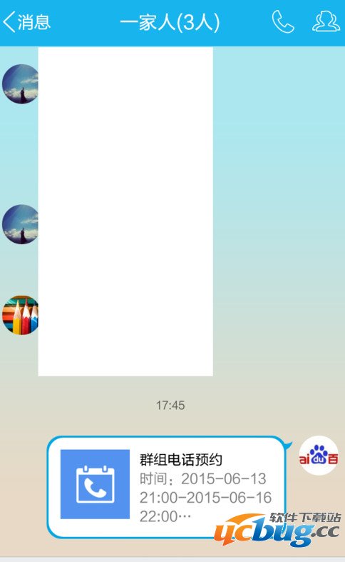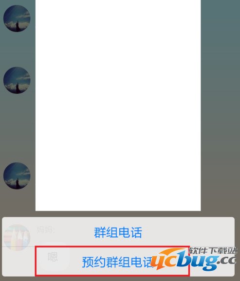 打开讨论组聊天页面以后,点击页面右上方的“电话”标志的按钮,接下来就会在页面最下方弹出菜单按钮,我们选择“预约群组电话”选项