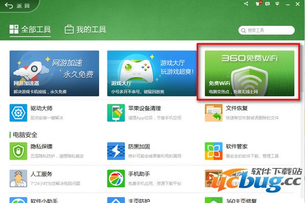 第二步、在“全部工具”处找到“360免费WifI”并点击。