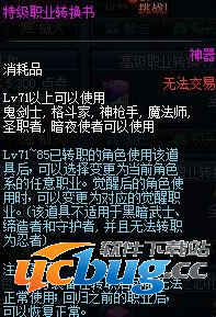 专供Lv71~85使用的职业转换书,使用后可以转换为当前角色系的任意职业!赋予了异次元气息的装备,技能会变更为相对应的职业后,技能也会恢复。