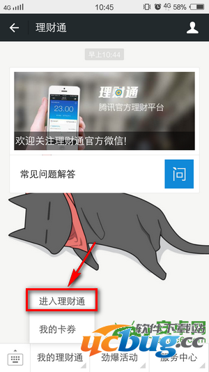 十二、然后小编来教大家怎么通过微信订阅号查看自己理财通的收益情况。刚刚我们选择了关注“理财通”,所以我们进入聊天界面,选择进入理财通订阅号