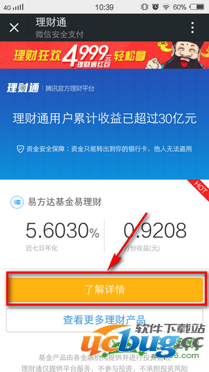 五、进入理财通界面后,选择了解详情
