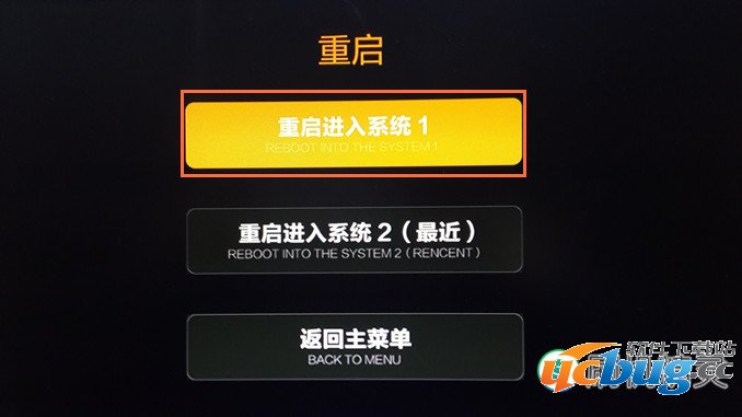 • 清空完成后选择“重新启动”,选择“重启进入系统1”分区即可,如下图: