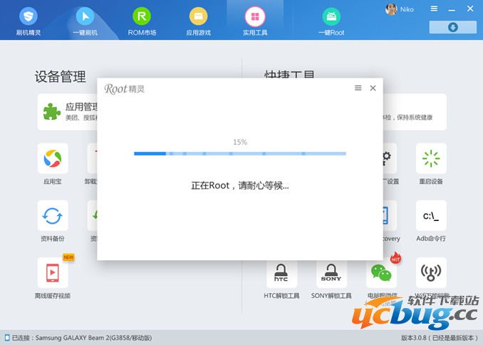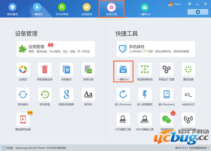 2). 打开刷机精灵,选择“实用工具” 下的 “一键ROOT”