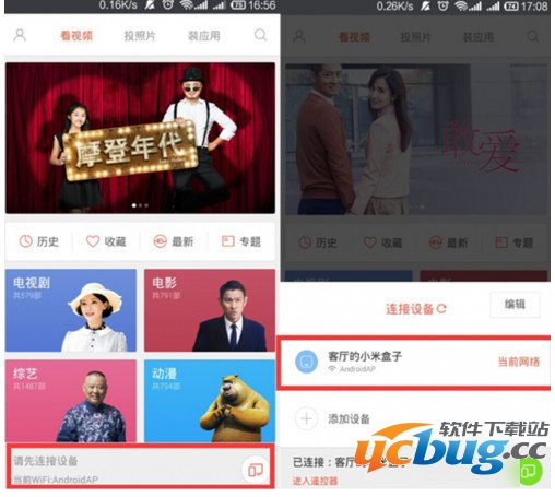 在小米投屏神器主界面,我们可以看到最上面有“看视频”、“投照片”和“装应用”三个选项,我们需要给小米小盒子安装泰捷视频的话,进入“装应用”选项中进行了。