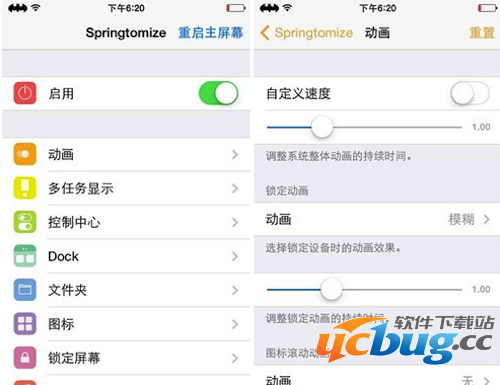 手工重启SpringBoard,大部分的问题应该可以解决的!若是重启SpringBoard后设置Springtomize没有效果的,重启设备再进行设定。如果还是没效果,你或许需要重装插件,重启SpringBoard+手工重启设备。
