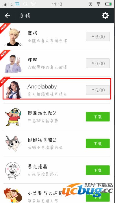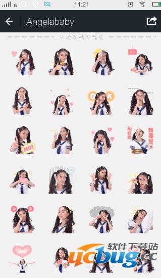 3、进入后我们就可以看到angelababy表情包了,然后点击进入==“购买”
