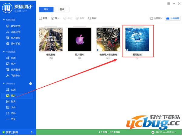 4、在“我的设备”-“照片”中可以查看刚才下载好的壁纸;