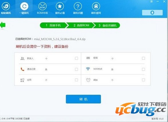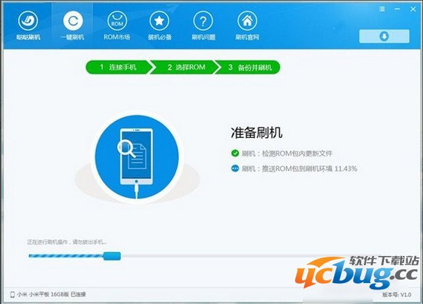 第四步:小米平板刷机开始,点击“刷机”刷机开始。