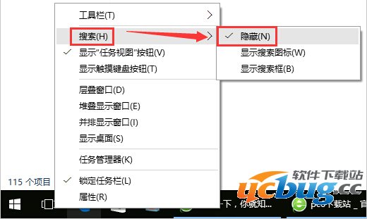 简直在任务栏空白处,右键--搜索--隐藏即可。是不是超级简单呢?