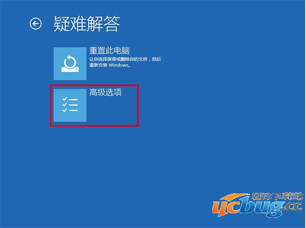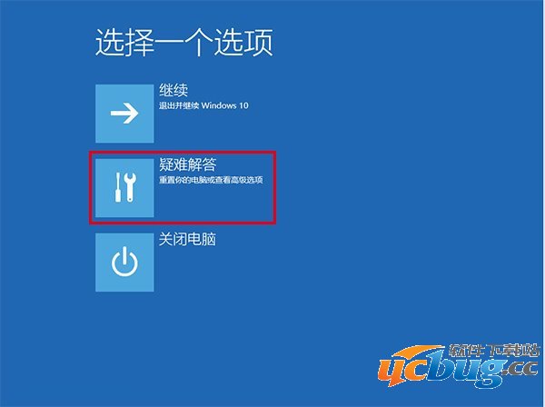 3、重启后,进入第一个选择画面,点击“疑难解答”