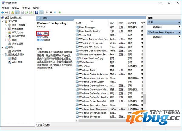11、再找到 Windows Error Reporting Service,单击后同样在左侧点击“停止此服务”