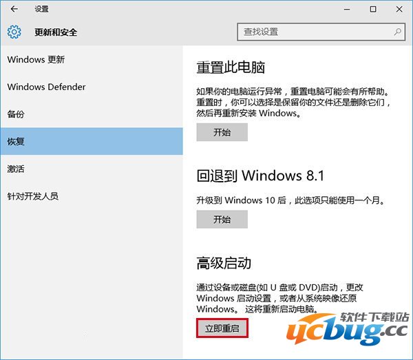 2、找到高级启动,点击“立即重启”