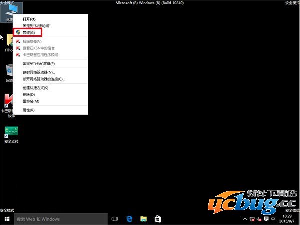 8、进入桌面后,在“计算机”图标点击右键,选择“管理”