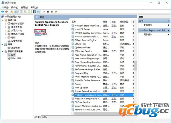 10、在中间找到 Problem Reports and Solutions Control Panel Support 服务,单击后在左侧点击“停止此服务”