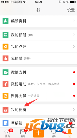 1、在手机微博客户端上,进入我的个人中心即可看到我的橱窗,然后在右上角点击分享即可。