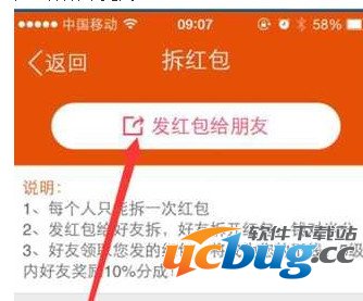 进入拆红包界面,点击“发红包给好友”,好友领取您发的红包,将成为您的下线,利用红包吸引用户,成功率更高!