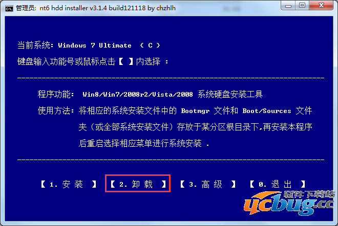 安装完成后重新打开NT6 按“2,卸载”即可卸载启动项。
