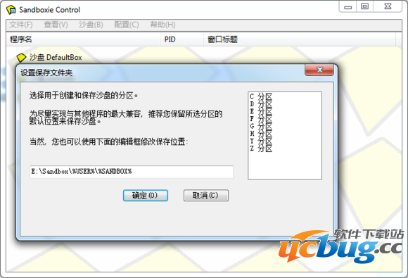 2. 运行沙盘软件,在沙盒的主界面里,选择“沙盘”à“设置保存文件夹”,在此窗口下可以选择磁盘和路径。请尽量选择大一点的分区: