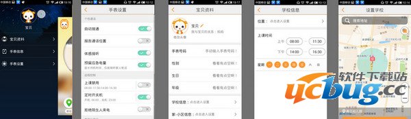 点击宝贝资料就可以设置宝贝的基本信息了~这里要注意设置学校的信息和家的信息,才可以对宝贝进行定位哦!点击“学校信息”我们能看到“位置”信息和上课时间等信息。在这里设置好上课时间,就可以开启上课禁用的功能了。点击“位置”会自动推送附近的位置,也可以手动输入孩子的位置哦!点击保存,学校的信息就设置好了,家的信息设置也是同理哦!