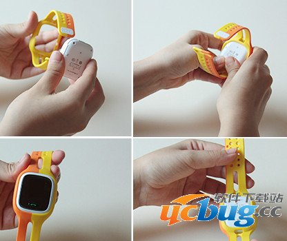 第二步,安装主机。如图所示,将主机正面朝上,从表带背面装入,轻按几下,主机就放入表带中了。