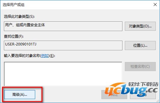5、在选择用户或组的对话框中点击:高级(A);