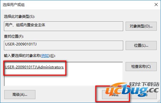 8、本机用户名已经显示的输入要选择的对象名称栏内,点击:确定