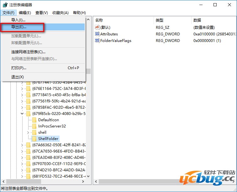 3、下面我们就可以修改{679f85cb-0220-4080-b29b-5540cc05aab6}ShellFolder的注册表键值,但在修改之前,备份一下注册表是必须的。