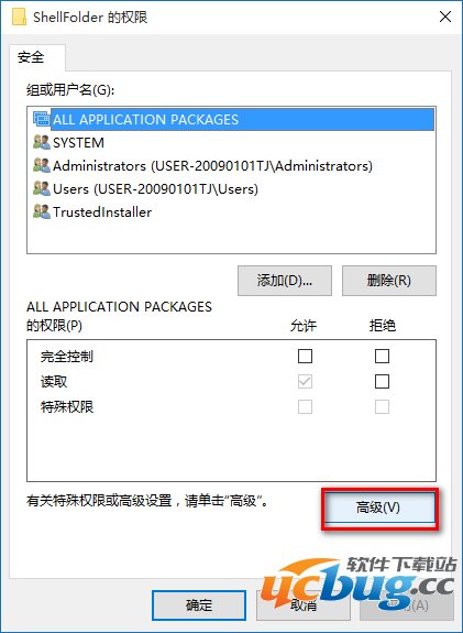 5、在打开的ShellFolder 的权限对话框中点击:高级