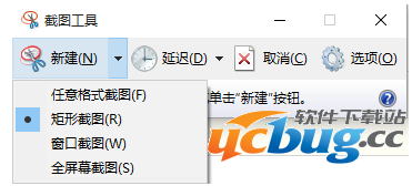 6、此外,还可以选择截图模式,如下所示左键单击新建右下侧三角,会出现如下选项,只需要根据需要选择合适的模式即可。