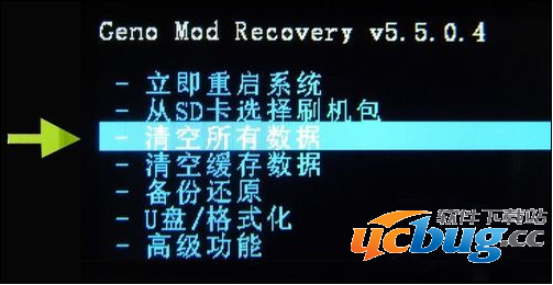 步骤三、然后在进入recovery模式,进入recovery模式的按键有的不一样。有的可以从电脑控制进入recovery模式,有的按着开机键+音量键就能进入recovery模式。进入recovery模式之后先清除所有的数据。