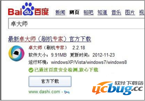 步骤一、这个需要安装一款刷机软件,这个软件用的人也非常的多,还有一件ROOT的功能,刷机也需要ROOT。我们百度搜索“卓大师”,然后点击下载安装。