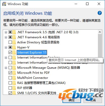 然后在那个小窗口中找到Inetrnet Explorer 11这一项,然后把前面的勾勾给取消了。