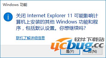 它会提示关闭Inetrnet Explorer 11可能会影响计算机上安装的其他Windows功能和程序,点击是再点击确定