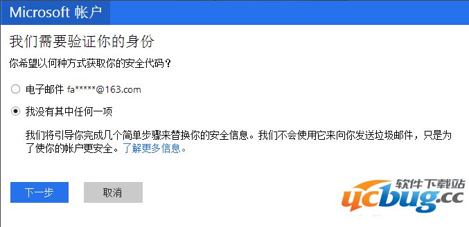 在找回密码的页面中,不会出现提示绑定的安全邮箱的,或是自己的安全邮箱给忘记了,那就需要选择“我没有其中任何一项”——下一步;